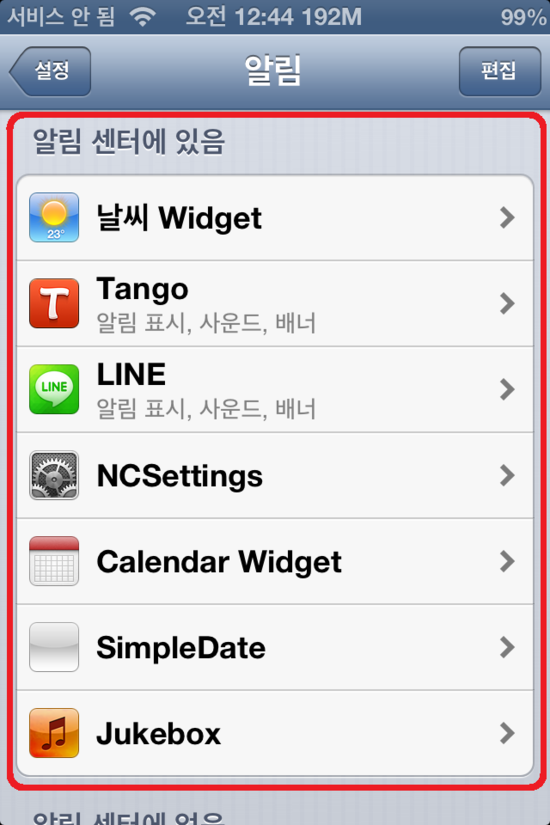 위 트윅들을 알림센터에 어떻게 활성화 시키냐구요? 혹시 몰라 그림 준비했습니다.
