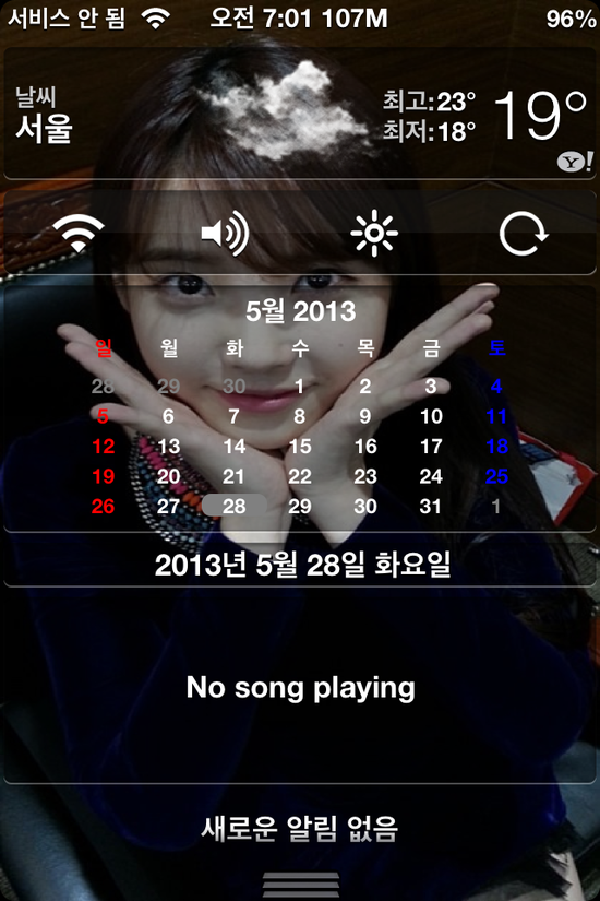 아래 그림은 알림센터 배경을 투명으로 그리고 아이유를 배경으로 한 그림입니다.