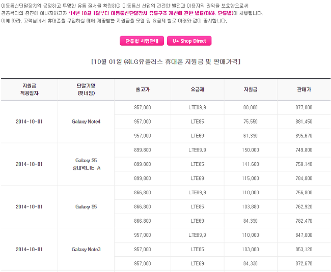 이를 뒷받침해주는 근거는 어제 통신사 홈페이지에 공시된 갤럭시 노트4 출고가 및 지원금, 판매가 입니다.
