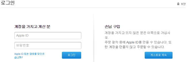 STEP4. 애플계정을 가지고 있는 분은 ID로 로그인해서 주문을 하는 것이 나중에 주문과정을 확인할 때 편리합니다.
