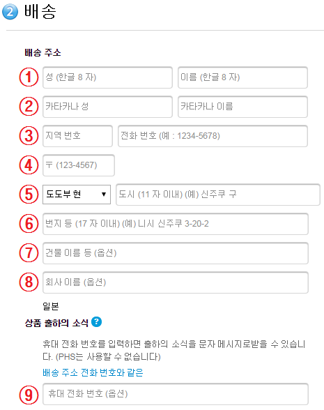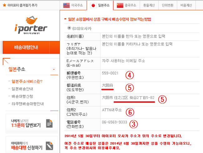 ③~⑥ 배송대행업체에 접속한 후 자신의 일본주소를 확인한 후 복사해 각 칸에 맞게 붙여넣기 합니다.