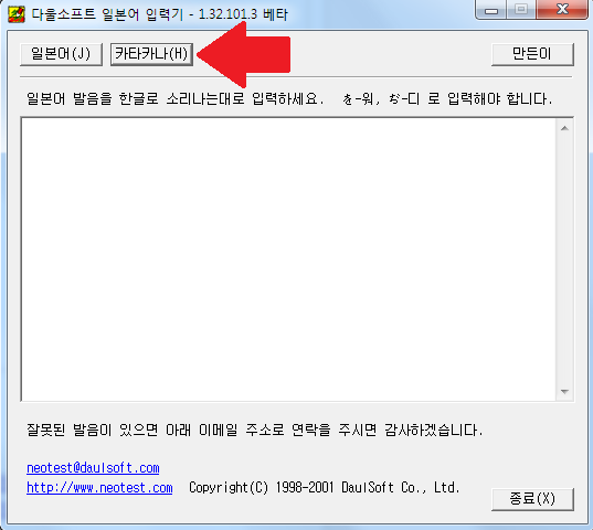 ② 자신의 이름을 일본어(카타카나)로 작성합니다. 이 과정은 다울소프트 일본어 번역기를 이용하면 쉽게 작성할 수 있습니다.[다운로드링크]