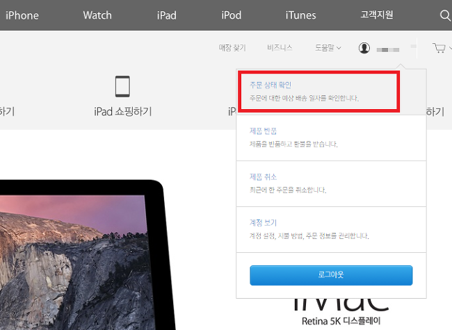 애플 스토어에 접속 후 로그인하면 주문 상태를 확인할 수 있습니다.