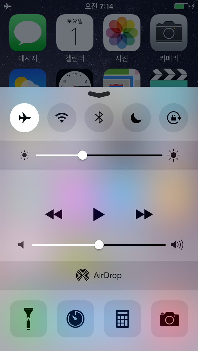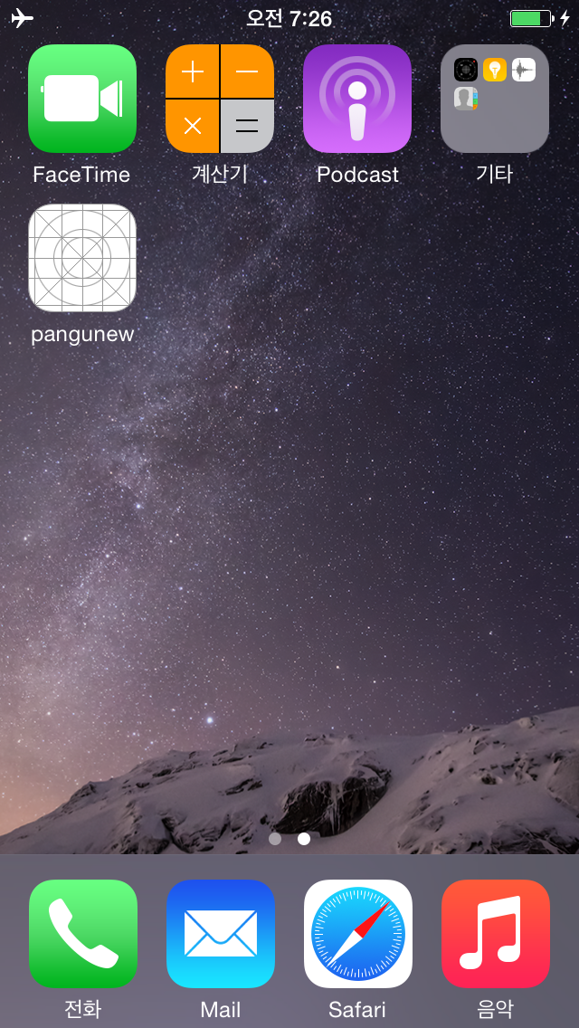 STEP1. Pangu8 탈옥툴을 다운로드한 PC에 애플 기기를 연결 한 후 탈옥할 애플기기를 AirPlane 모드로 변경합니다. 그리고 탈옥하는 과정동안 애플기기의 화면을 볼 수 있게 켜 둡니다.