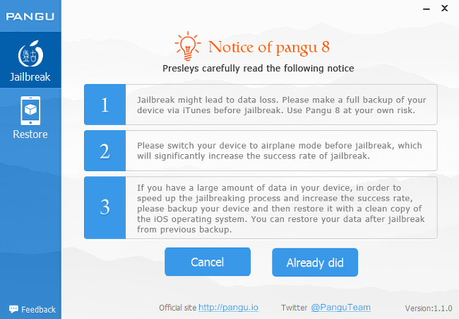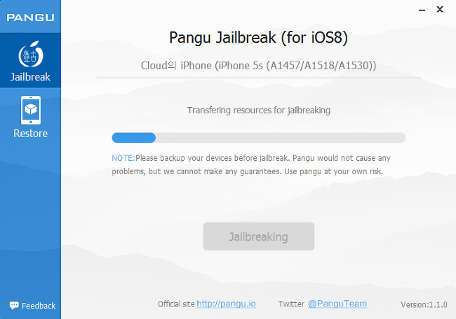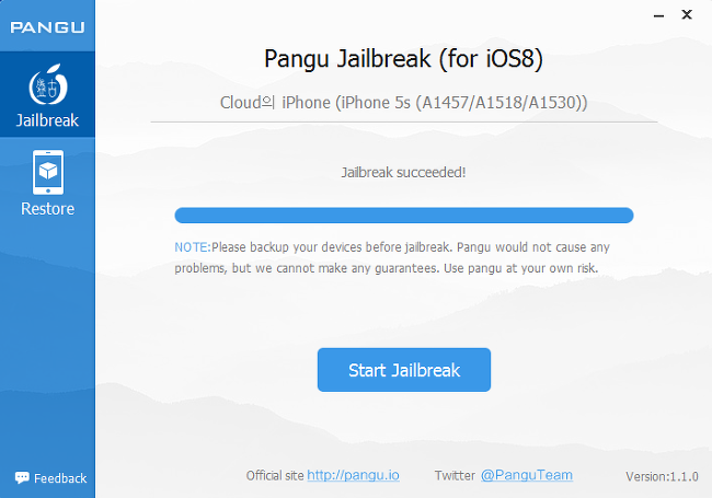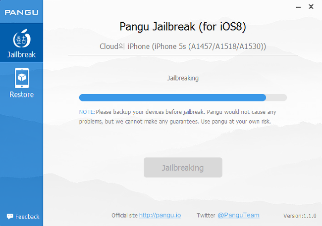 ▶ Pangu8 v1.1.0 다운로드 [Link1], [Link2]