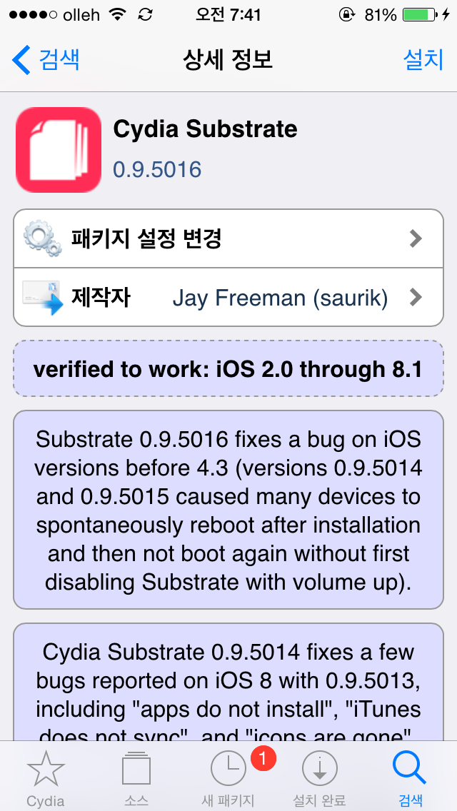 아직 몇몇 중요 트윅들이 iOS8을 지원하지 않는 것이 아쉽기는 하나, 시간이 해결해 줄거라 생각합니다. 아직 탈옥을 망설이시나요? 탈옥유저였다면 이제는 탈옥해도 될 것 같습니다. ^^