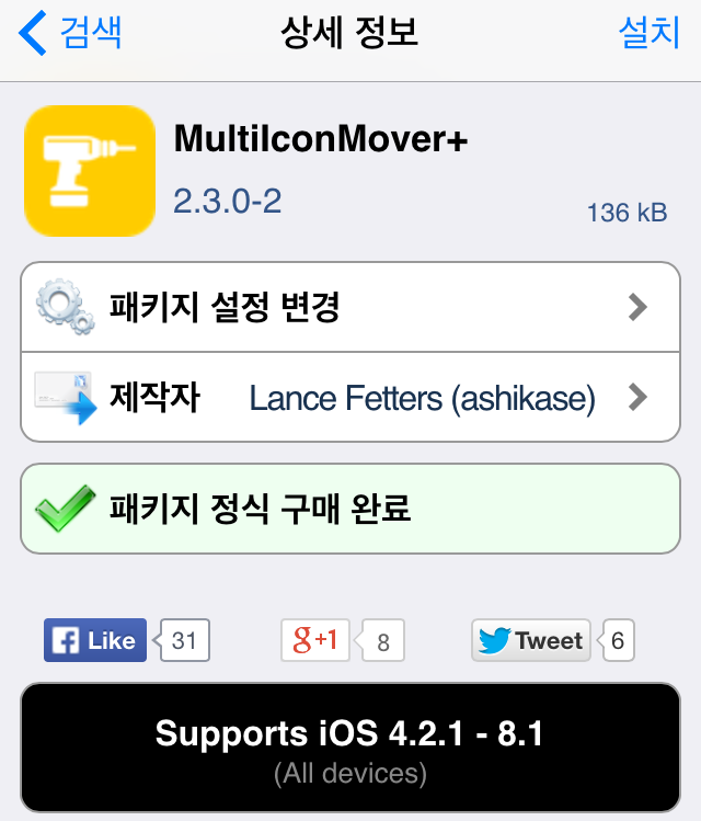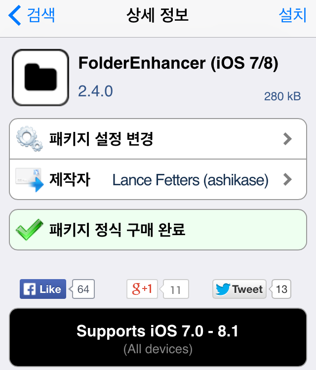 FolderEnhancer 트윅은 iOS8 호환 업데이트되면서 이름이 FolderEnhancer (iOS7/8)로 되었습니다. 또한 MultiIconMover+의 무료버전인 MultiIconMover 트윅도 iOS8 호환 업데이트 되었다는 소식입니다. 이상으로 엠스블로그였습니다.