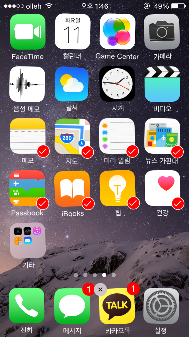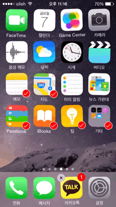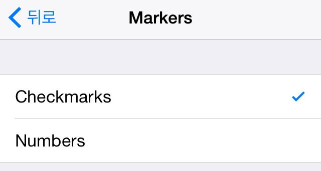 Checkmarks를 선택할 경우 앱을 터치하면 ⓥ마크로 표시되며, Numbers를 선택하면 숫자로 표시됩니다.(아래그림참고)
