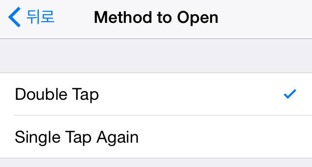 Double Tap을 선택할 경우 편집모드에서 폴더를 연속 두번 터치하면 폴더가 열리게 됩니다. Single Tap Again을 선택할 경우 편집모드에서 폴더를 한번 터치하면 폴더가 체크되고 다시 한번 터치하면 폴더가 열리게 됩니다.