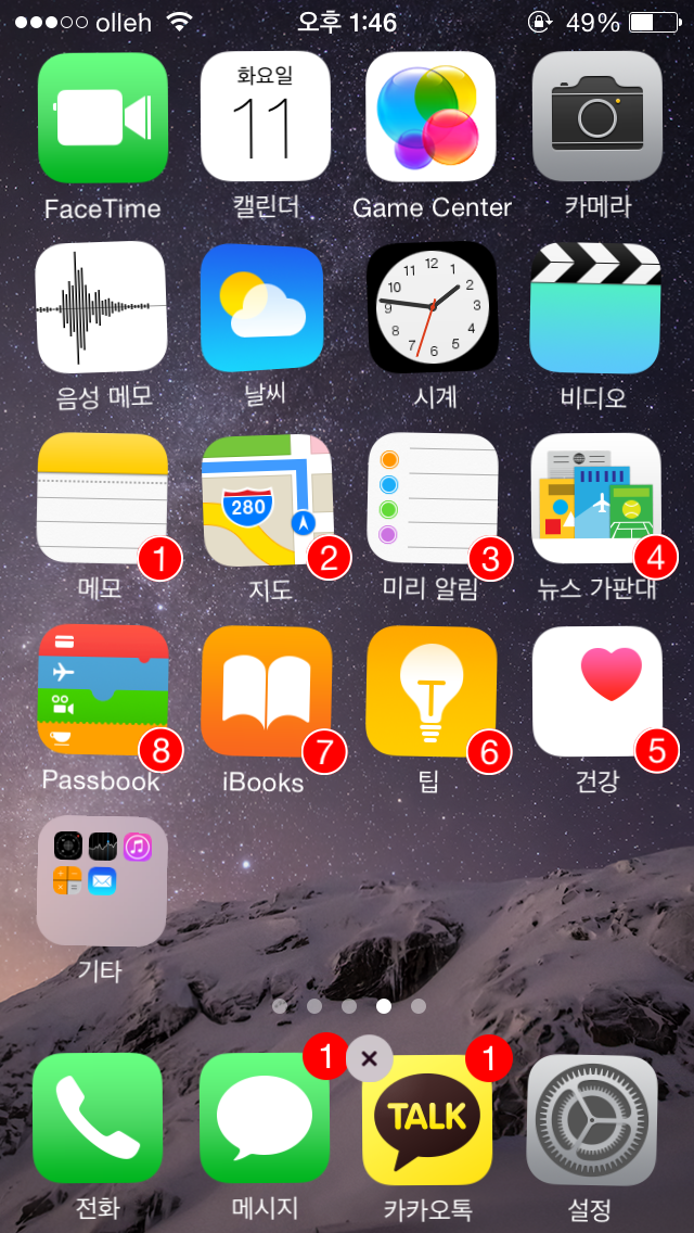 STEP3. 이동하고자 하는 페이지 또는 폴더로 가서 홈버튼을 한번 누릅니다. 그러면 STEP2에서 선택했던 앱들이 모두 한번에 이동됩니다.