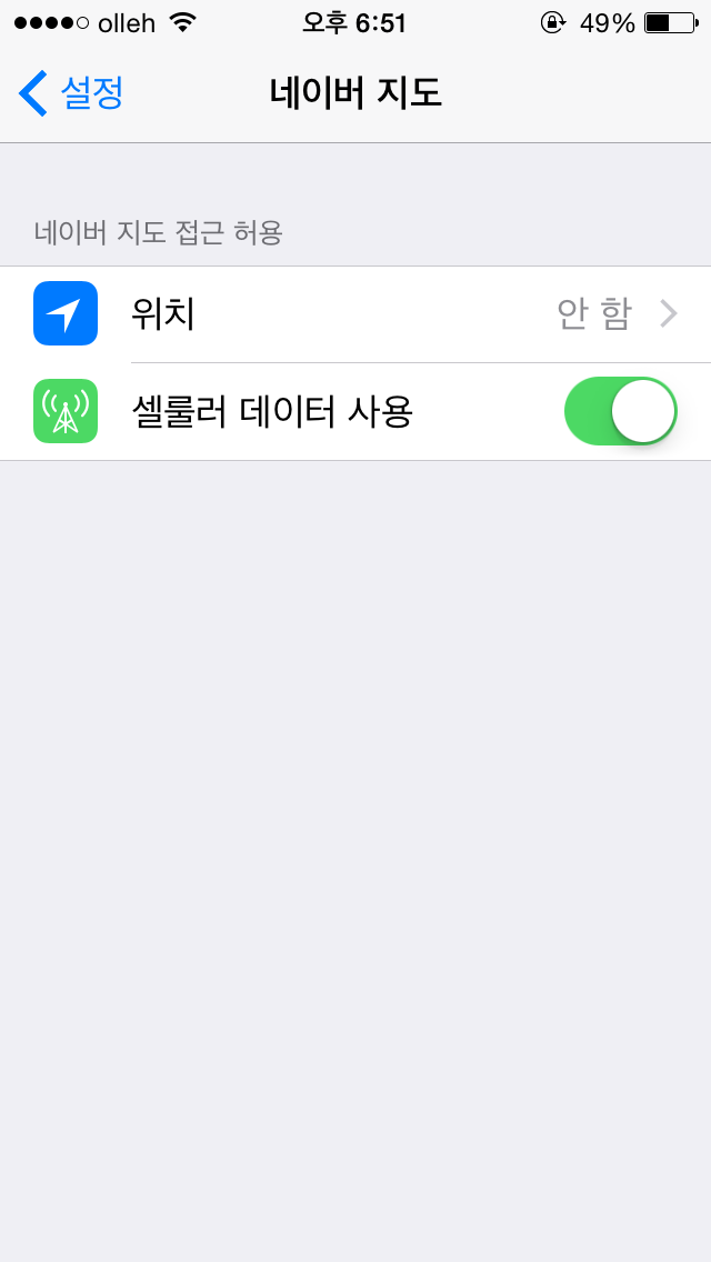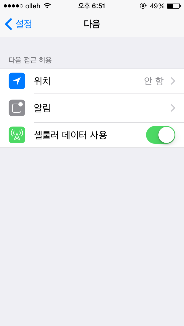 앱을 많이 설치하면 할수록 설정 아래에 앱목록도 그만큼 길어지는데요. 저같은 경우 앱을 100개 이상 설치해놔서 그런지 앱 목록이 꽤 깁니다. 해당 앱들을 터치해 보면 아래와 같이 위치 / 셀룰러 데이터 사용 / 알림 등의 설정을 할 수 있는 메뉴가 나오는데요.