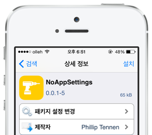 설정 맨 아래에 보이는 앱목록을 없애주는 시디아 트윅, NoAppSettings [iOS8 호환]