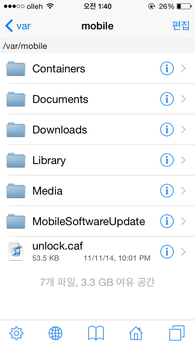 또한 Custom 을 선택하면 기본 효과음 외에 다른 효과음도 밀어서 잠금해제 효과음으로 사용할 수 있는데요. /var/mobile/ 경로에 자신이 사용하고 싶은 caf 효과음 파일을 unlock.caf로 이름을 바꿔 저장하면 사용할 수 있습니다.