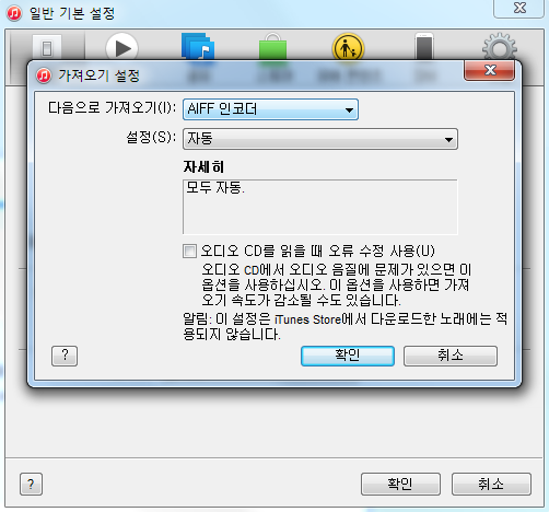 STEP3. 다음으로 가져오기(I):를 AIFF 인코더로 바꾸고 확인을 클릭합니다.