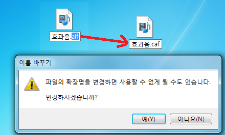 STEP7. 파일의 확장자명을 .aif에서 .caf로 변경합니다. 자, 이렇게 해서 MP3 파일이 CAF 파일로 변환되었습니다.