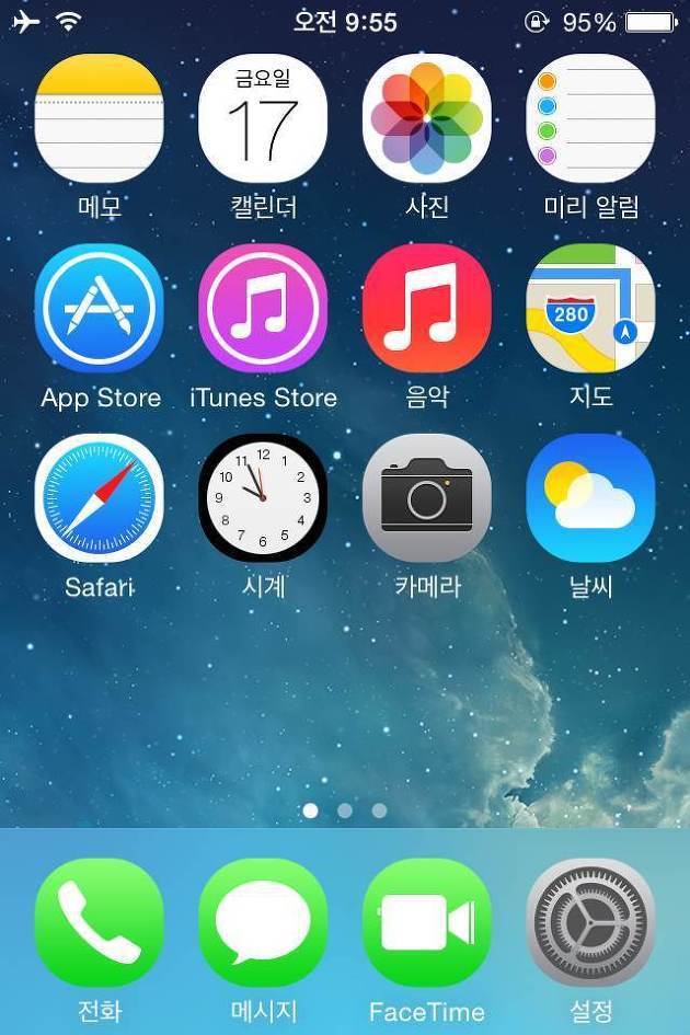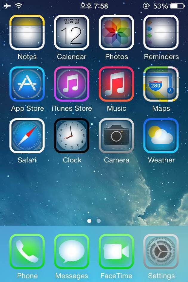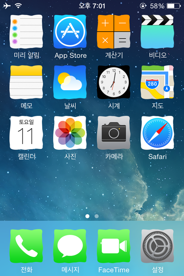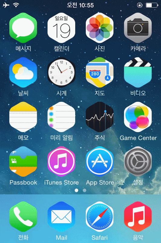 ※ 이 방법은 아이폰5S를 대상으로 한 것이며 아이폰6와 아이폰6 플러스는 아이콘 크기가 다를 수 있으니 참고하시기 바랍니다.