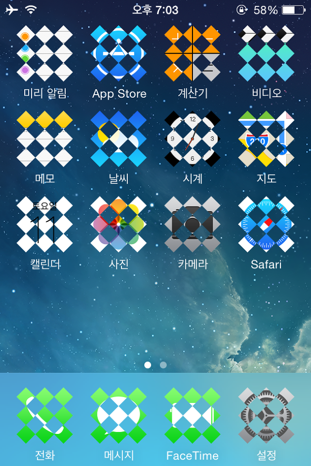iOS7 탈옥 때 WinterBoard 없이 홈화면의 앱 아이콘 모양을 바꾸는 글을 쓴 적이 있습니다. 그때 썼던 방법을 iOS8.1.1 탈옥 아이폰에서 해보니 잘 적용이 되더군요. 그래서 iOS7 탈옥 때 썼던 아이콘 모양을 총 정리해 봤는데요. WinterBoard 트윅을 설치하지 않고 홈화면 앱 아이콘 모양을 바꾸고 싶은 분들은 참고하세요. ^^