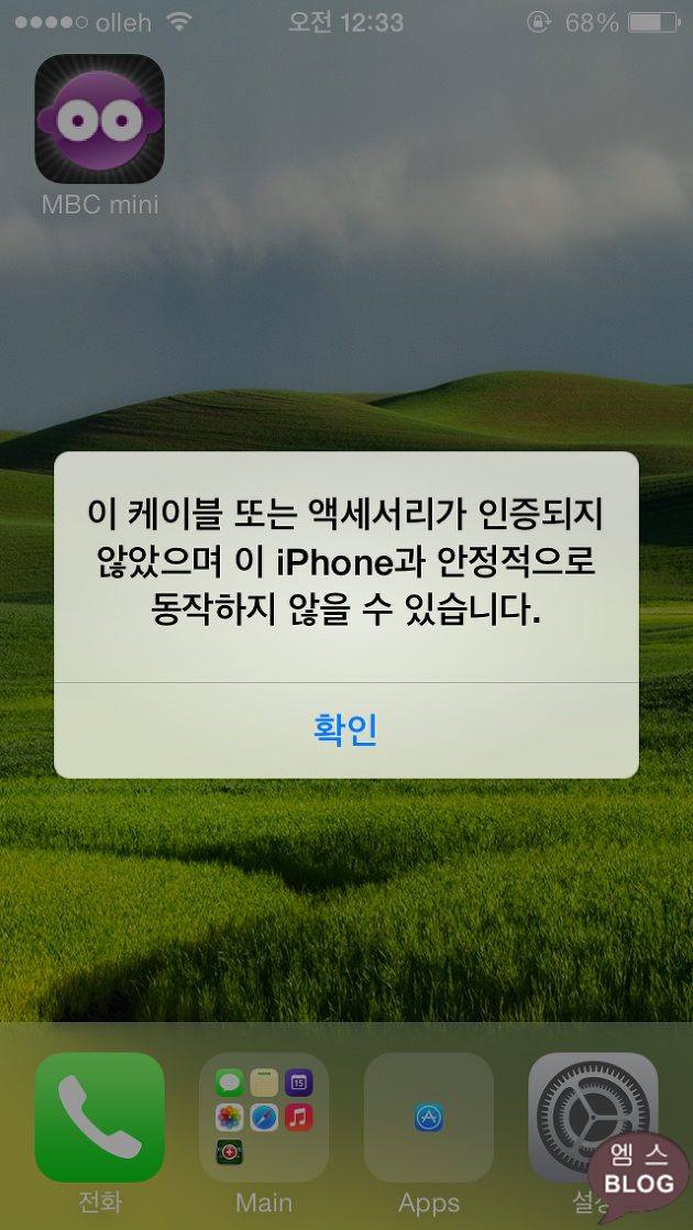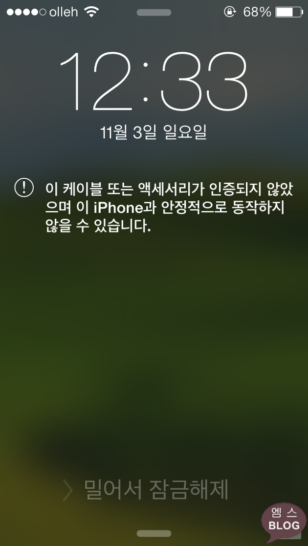 애플에서는 인증되지 않은 비정품 케이블로 충전할 경우 발생할 수 있는 배터리 고장 또는 기타 위험성을 사전에 차단하고 기기의 안전성을 위해 비정품 케이블로 충전할 경우 아래와 같은 경고 문구 메세지가 나타나게 합니다.