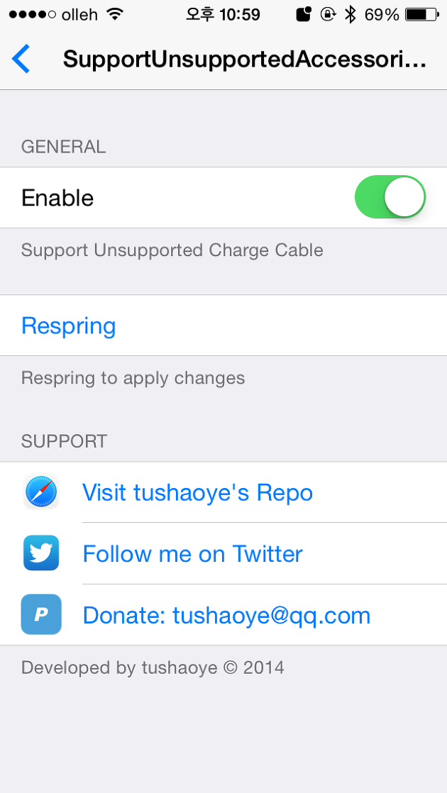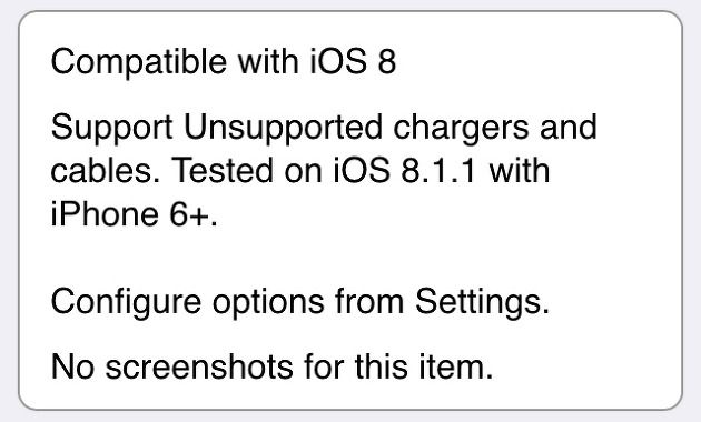 인증되지 않은 비정품 케이블로 충전할 수 있게 해주는 시디아 트윅, Support Unsupported Accessories 8 [iOS8 이상]