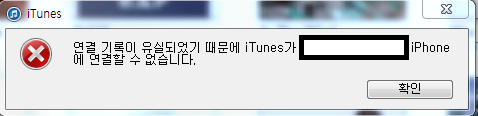 연결 기록이 유실 되었기 때문에, 아이폰 아이튠즈에 연결시 연결 기록이 유실되었기 때문에 아이폰이 연결되지 않는다는 오류