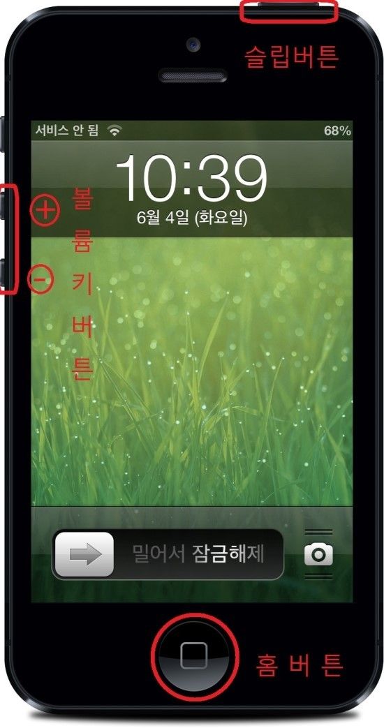 1. 무한사과 모드부터 풀어야되는데요. 슬립버튼과 홈버튼을 동시에 눌러 강제종료를 시킵니다. 이때 사과가 완전히 없어질 때 까지 눌러줘야 강제종료가 됩니다.