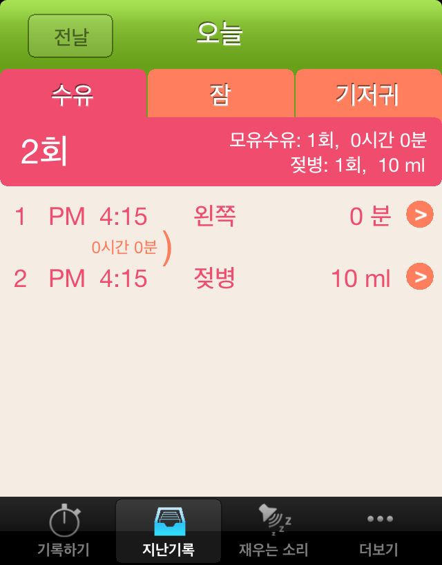 또한, 모유수유를 하지 않고 분유수유를 하는 아기엄마는 보충수유에 분유 양(ml)을 숫자로 표시하면 됩니다. 그러면 대충 하루에 분유를 몇 ml 먹는지 알 수 있습니다.