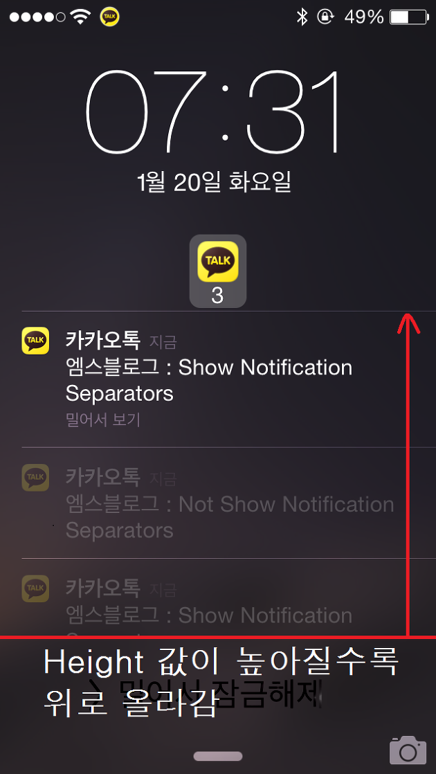※ Height 값을 240으로 해 놓고 잠금화면의 앱 알림 아이콘을 터치하면 앱 알림 내용이 보이지 않습니다. 이게 더 Privacy 합니다.^^