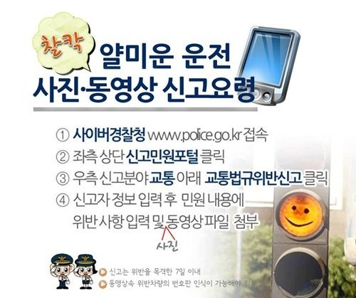 얼마전 불법 유턴하는 차량 때문에 급정거하는 아찔한 상황이 있었습니다. 다행히 그 도로에는 차량 통행이 얼마 되지 않는 곳이어서 사고로 이어지지는 않았지만 가슴 요동치게 만드는 순간이었습니다. 본인도 미안했던지 비상깜빡이를 몇번 비췄지만 그것이 교통사고(발생하진 않았지만)를 대신할 수는 없습니다. 이런 경험이 있는 분들 중 차량에 블랙박스를 소지하고 있는 분들에게 자신이 직접 신고할 수 있는 교통법규위반차량 신고 방법에 대해 알려드립니다.