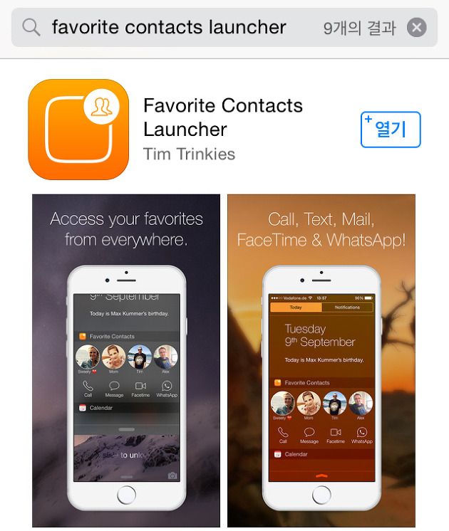Favorite Contacts Launcher : 아이폰의 자주 사용하는 연락처를 알림센터 위젯으로 사용할 수 있는 앱