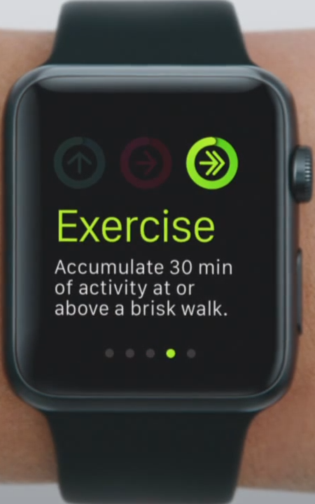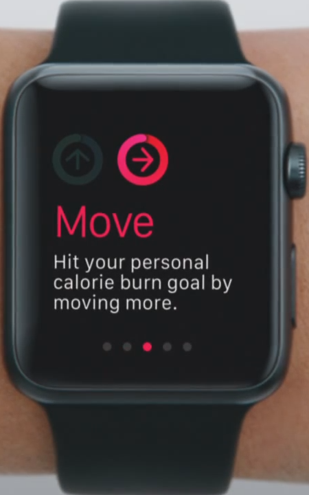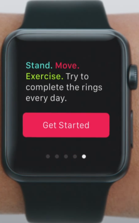 애플워치에서 Activity 앱을 처음 실행하면 아래와 같은 화면이 나옵니다. 화면을 왼쪽으로 끝까지 쓸어넘긴 다음 Get Started 버튼을 누릅니다.