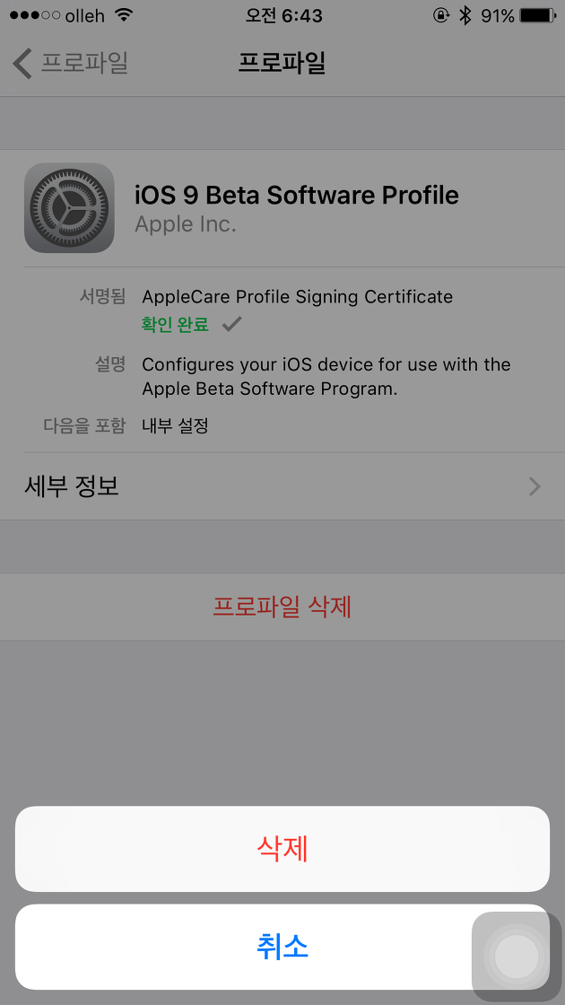 iOS 9.2 퍼블릭베타 1 에서 iOS 9.2 베타 2 로 업데이트 하기 |